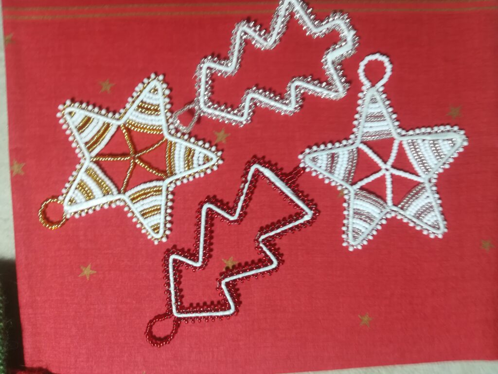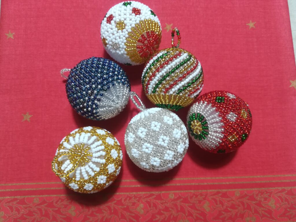 Beadwork can be used as gift tags, can serve to decorate the Christmas tree or decorate a whole room for Christmas. Products for Christmas are, for example, stars, angels, fir trees or baubles. All products are rather small, in the range up to 10 cm.