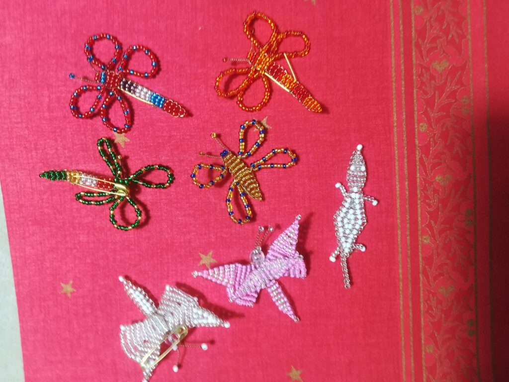 This is the traditional use of beadwork. There are necklaces, bracelets or ear pendants. In addition, clothing jewelry such as brooches or pins.