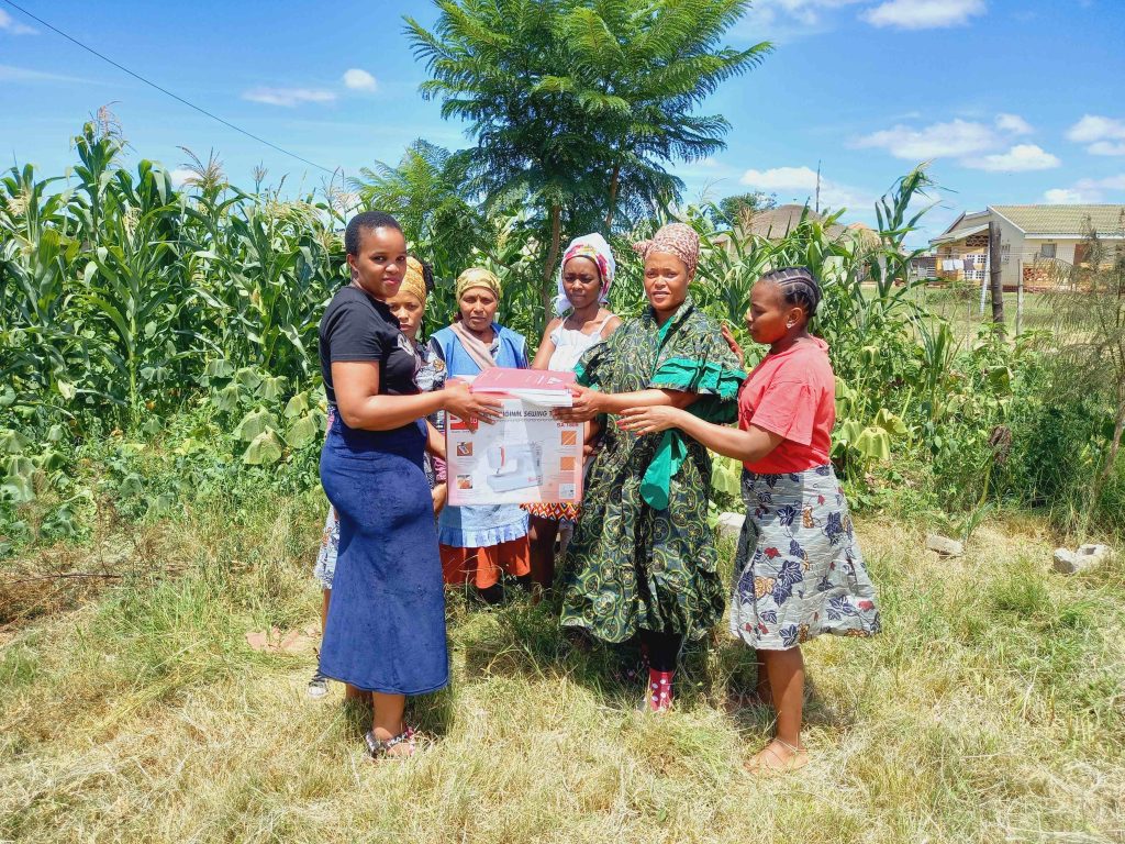 Mvunyane is a rural area situated in the North of KwaZulu Natal. Yebozululand taught the community of Mvunyane sewing, beadwork and upholstery skills to give them alternative and various ways of making money. They are currently navigating their way through these different industries. The system we teach as the organization requires participants to utilize a pattern maker which they didn’t have. Chameleon donated a pattern maker, sewing machine and an Italian Pattern Making Book to them which will enable them to practice sewing in a way they are familiar with. We normally share orders with different groups to assist them make money which means uniformity is also important hence utilizing a pattern maker is also vital. They specialize in aprons, traditional skirts, shirts and designer dresses. They share their knowledge amongst each other so each could be experienced in each department. They are looking into supplying for larger organizations and planning on training and hiring more staff to achieve that. The donations issued by Chameleon has offered them an opportunity to succeed in their aim to grow as an organization.