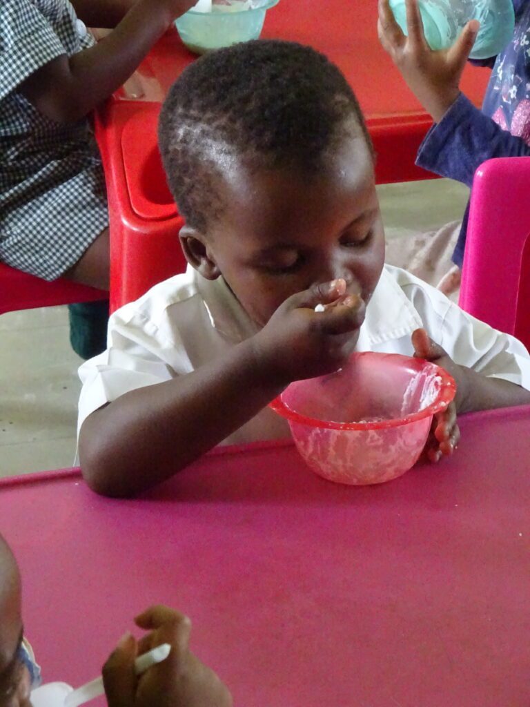 In 2022, the kindergarten could be supplied with tap water through a borehole. The water also benefits the direct neighbours to the kindergarten.