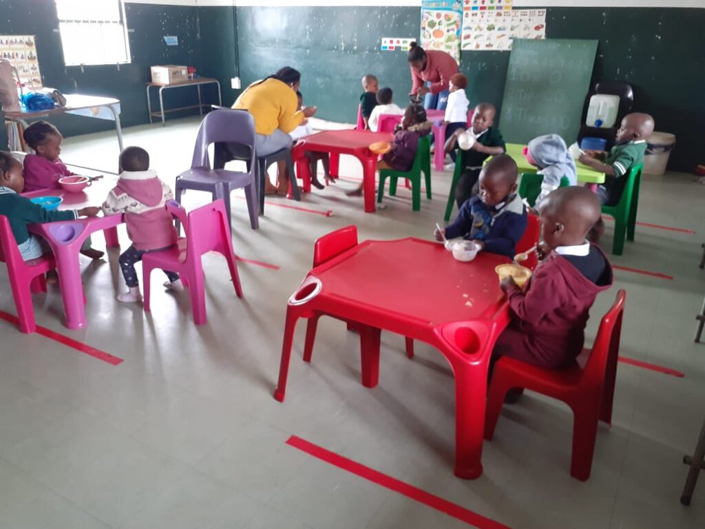 The Vulingqondo Crèche near Mbongolwane was founded in 2012 on the initiative of Mrs Sbahle Ndwandwe. The Vulingqondo Primary School has made rooms available for this purpose. 25-30 children aged 1-5 years attend the facility every day. They receive breakfast and lunch there, also financed by the Advent bazaar in Germany, just like the Dumayo Kindergarten. A cook provides simple but varied meal. In 2021, a vegetable garden was started.
