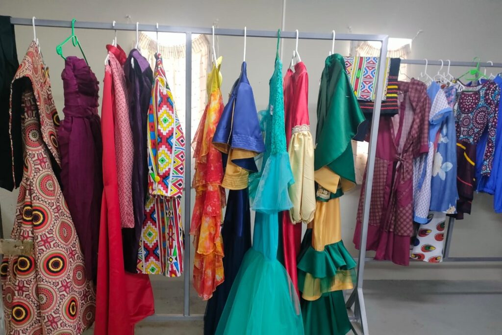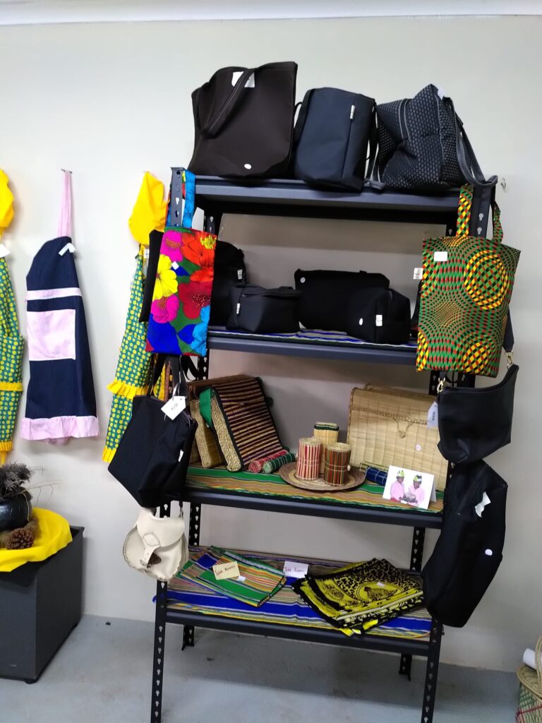The showroom is a room located in our main facility and consists of products from the sewing and beadwork department. A group of enthusiastic employees are always ready to welcome tourists. Purchasing these products enables participants to earn money, which they need for their livelihoods. Many women have to provide not only for themselves, but for their whole family.